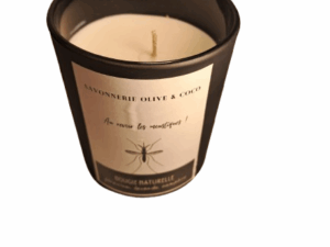Chaque bougie est à base de cire de soja (Europe) et cire d’abeille (Nivillac); cires naturelles de qualité, biodégradables,  sans OGM, ni pesticide.